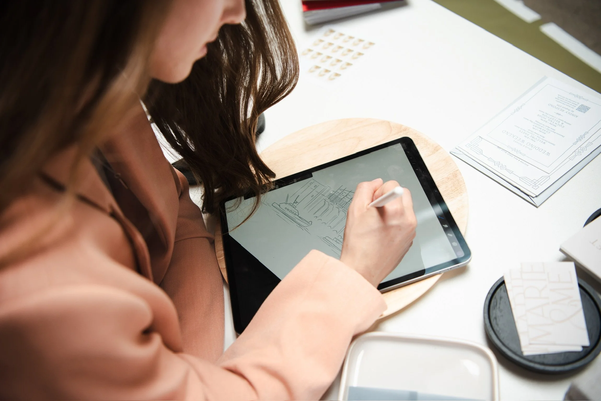 Marie & Me began with late nights designing bespoke stationery for friends and family, fueled by our shared love for art and meaningful details. Today, we’re honored to bring that passion and a decade of design experience to couples like you, creating custom wedding stationery that celebrates your unique love story.